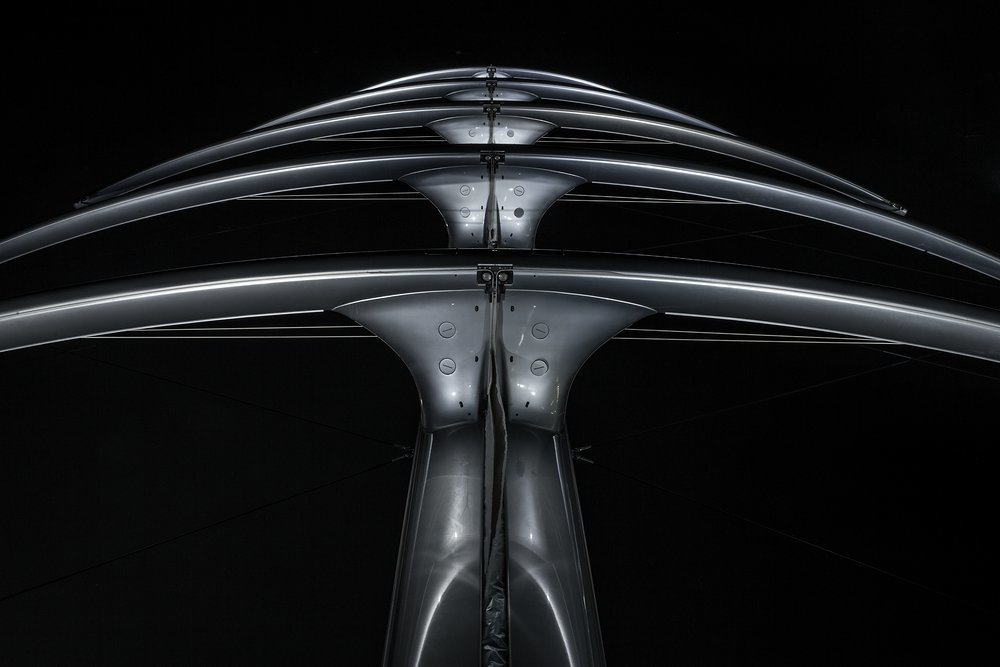 MALTESE FALCON is instantly recognisable due to her three free-standing carbon fibre masts, each with six fixed, curved yards along which 2,400sqm (25,833sqft) of sails rolled in the mast unfurl in under six minutes.