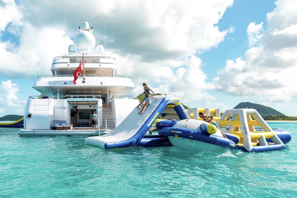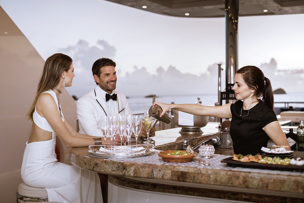 With one of the best sea-level beach clubs on the water, a large jacuzzi with swim up bar on the pool deck and a stand-out spa, including sauna, massage room and beauty salon with on board masseuse and beautician, TITANIA brings a serious wellness game to the table. A fully equipped glass gym with panoramic views is serviced by a personal trainer, while the yacht’s toy chest is full to bursting. When it’s time to wind down at the end of the day, the yacht’s onboard mixologists have all your needs in hand.